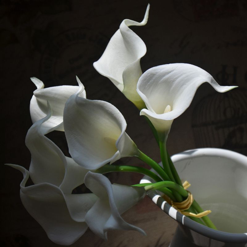 仿真花卉手感PU家居客厅装饰白色马蹄莲新娘婚纱摄影道具餐桌花束热门设计联盟服务商