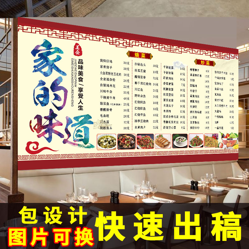 饭店小吃店菜单价目表定制墙贴快餐厅价目表设计海报定制广告贴纸热门设计联盟服务商