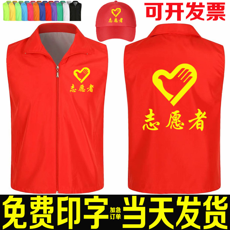 志愿者马甲定制义工红色广告党员宣传公益活动背心工作服印字logo热门设计联盟服务商