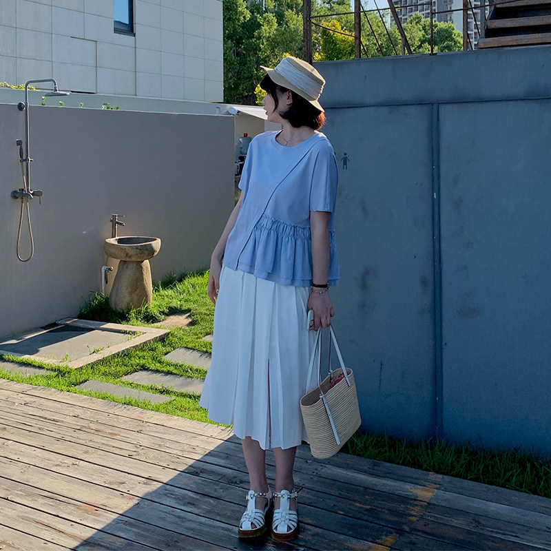 马西西微胖大码 夏季宽松显瘦短袖T恤女胖mm设计感小众荷叶边上衣热门设计联盟服务商