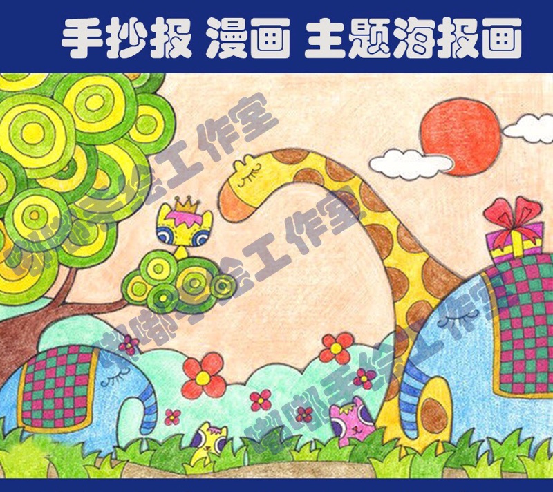 手抄报主题海报漫画蜡笔彩铅中小学儿童创意科技画报定制代画设计